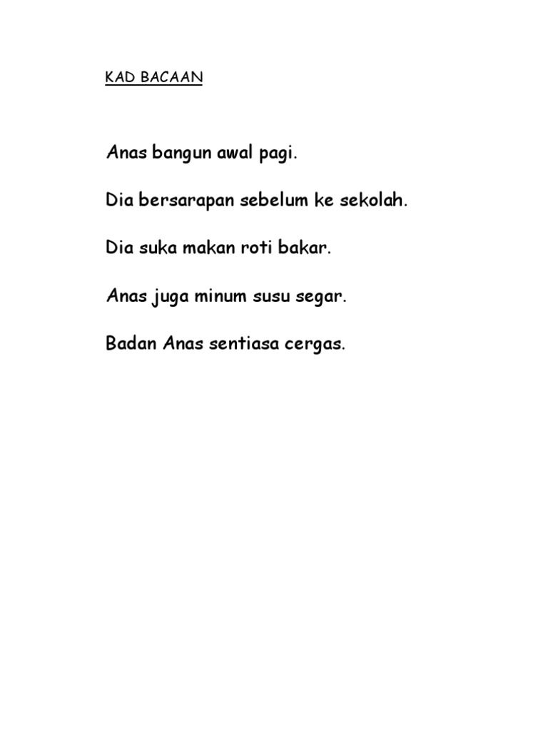 Kad Bacaan Dan Lembaran Kerja Pdf